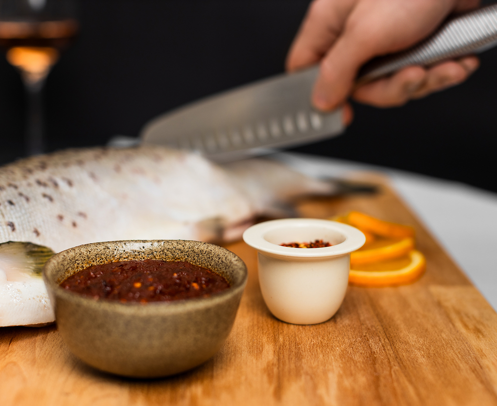 1 Whole salmon (Salmo Salar) (approx. 1.5 to 2 kg), 1 Swiss Lachs Chili Papaya marinade 120 g, packed separately