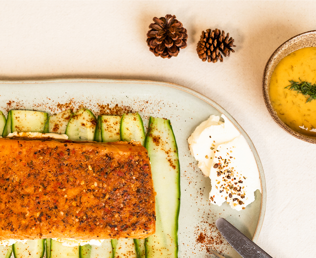 Hot-smoked Swiss salmon (Salmo salar), salt, paprika, red pepper, cayenne, tomato powder, pepper, flavouring.