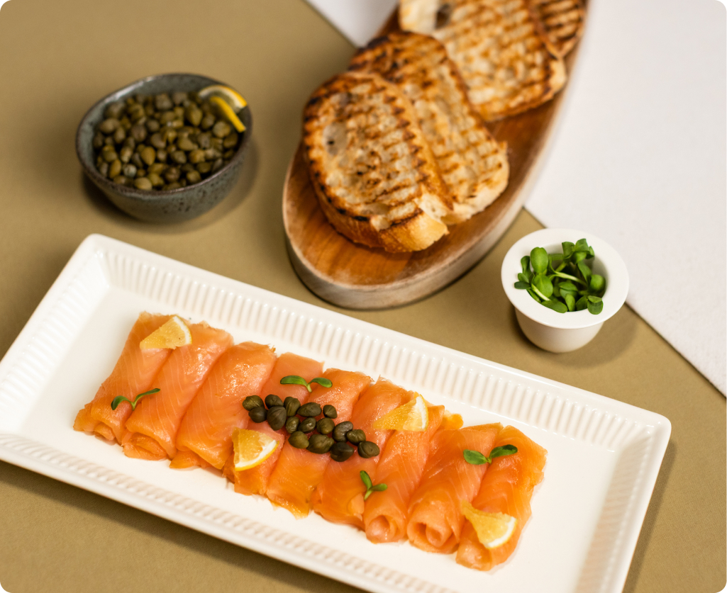 Cold-smoked Swiss salmon (Salmo salar), salt